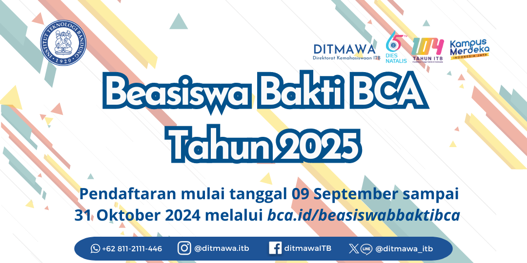 Bank BCA membuka kembali kesempatan untuk mahasiswa/i ITB Program Sarjana untuk mendaftar Beasiswa Bakti BCA Tahun 2025