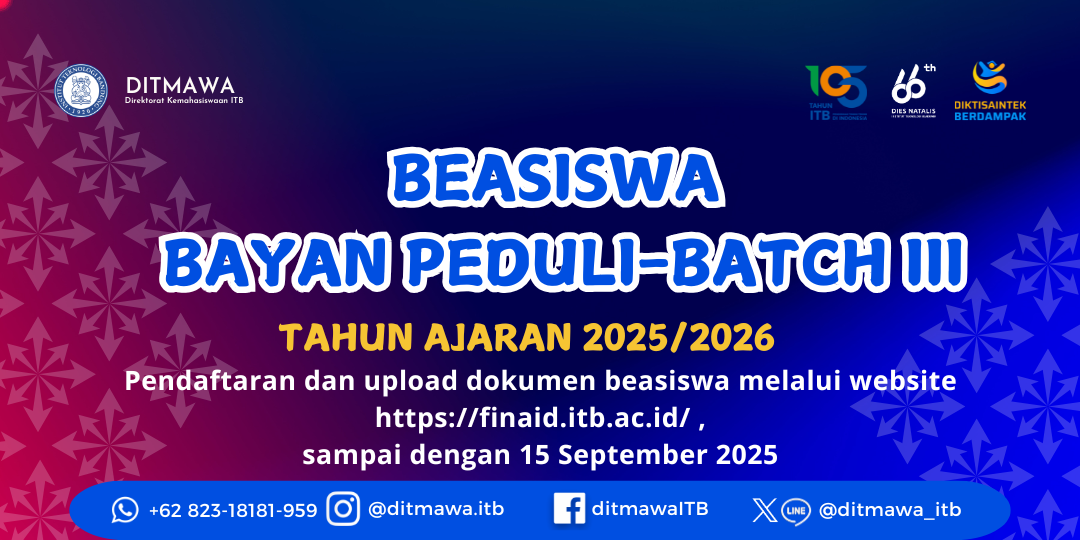 Pendaftaran dan upload dokumen beasiswa melalui website https://finaid.itb.ac.id/ ,sampai dengan 15 September 2025