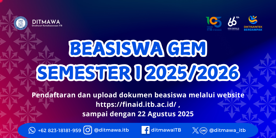Pendaftaran dan upload dokumen beasiswa melalui website https://finaid.itb.ac.id/ , sampai dengan 22 Agustus 2025