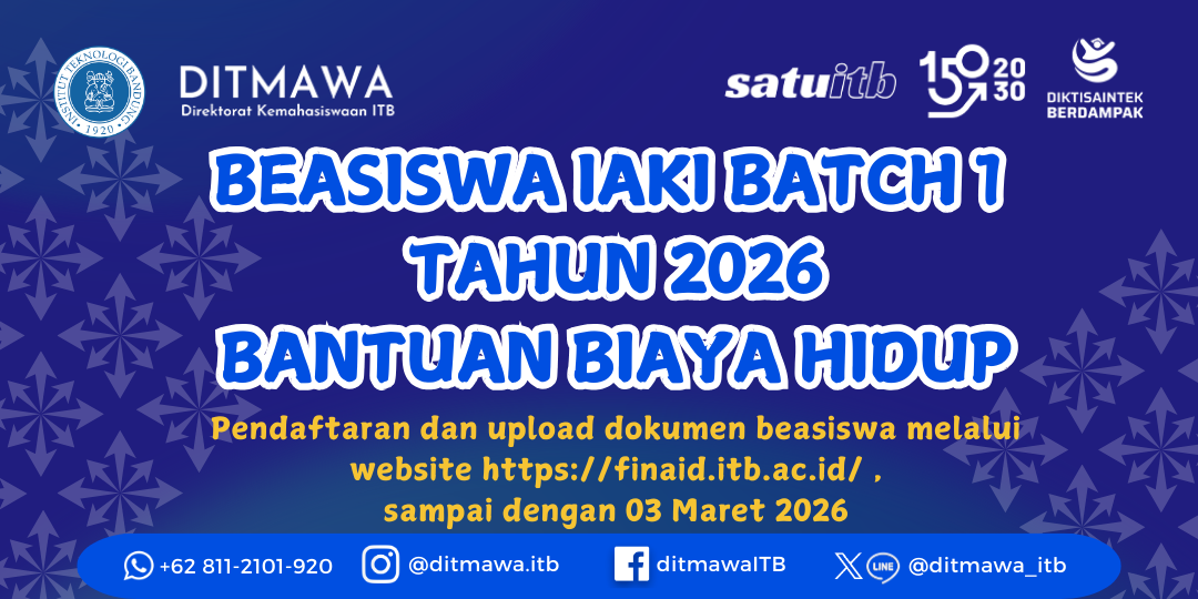 Pendaftaran dan upload dokumen beasiswa melalui website https://finaid.itb.ac.id/ , mulai tanggal 20 Februari sampai dengan 3 Maret 2026.