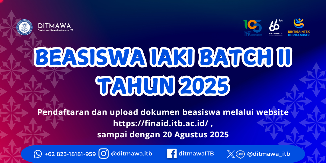 Pendaftaran dan upload dokumen beasiswa melalui website https://finaid.itb.ac.id/ , sampai dengan 20 Agustus 2025