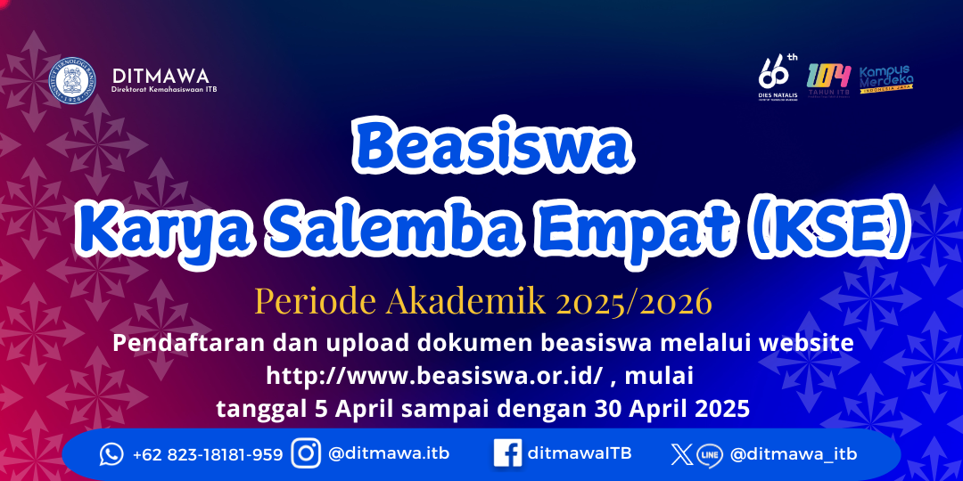 Yayasan Karya Salemba Empat (KSE) telah membuka pendaftaran beasiswa untuk mahasiswa S1 ITB, dengan benefit beasiswa berupa uang saku perbulan sebesar Rp. 750.000, Pelatihan Leadership, Entrepreneurship, Career Coaching, Workshop, dll, dan berkesempatan magang di berbagai perusahaan.