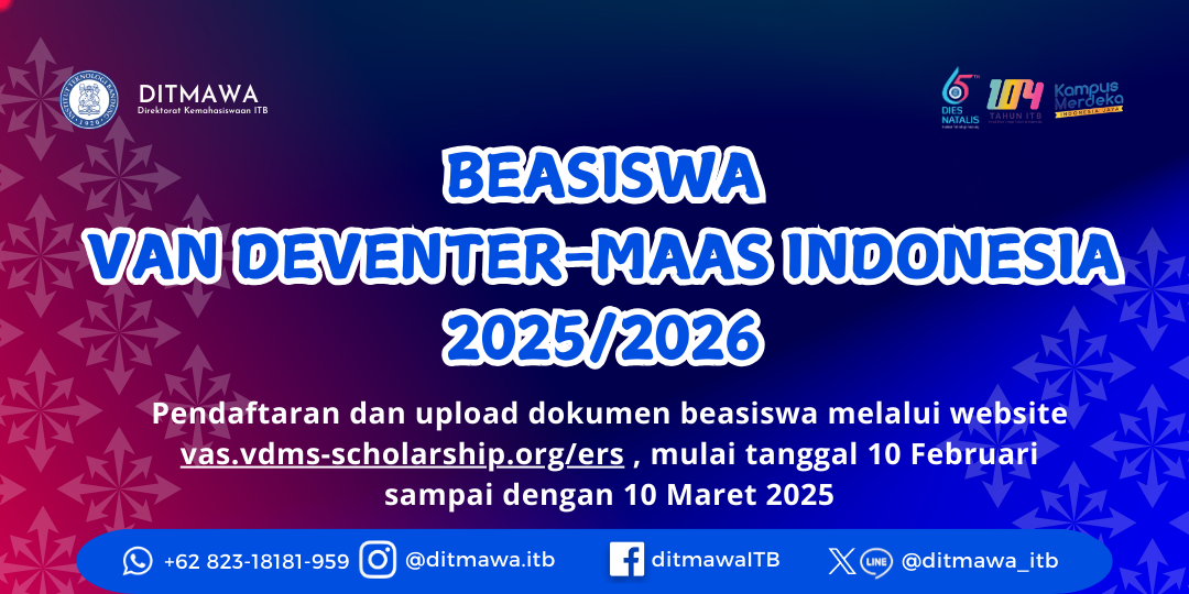 Van Deventer-Maas Indonesia telah membuka kembali beasiswa Tahun 2025/2026 untuk mahasiswa S1 yang berasal dari keluarga dengan keterbatasan finansial. Beasiswa yang diberikan memberikan manfaat :