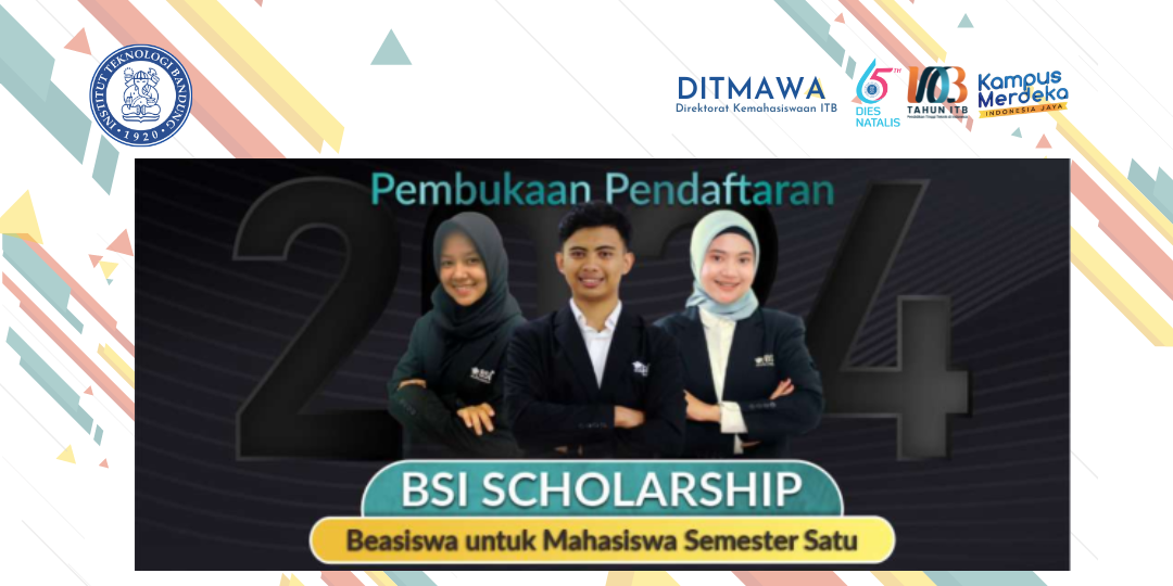 Pendaftaran dibuka mulai tgl 13 Juni s.d 14 Juli 2024, melalui website kemahasiswaan ITB : https://linktr.ee/BSI_Scholarship