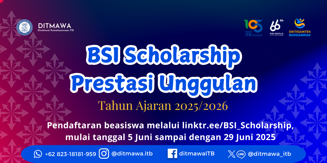 BSI Scholarship Prestasi Unggulan membuka kembali kesempatan untuk mahasiswa/i ITB baru jalur SNBP & SNBT dari keluarga dhuafa, dengan manfaat beasiswa yang diberikan berupa: