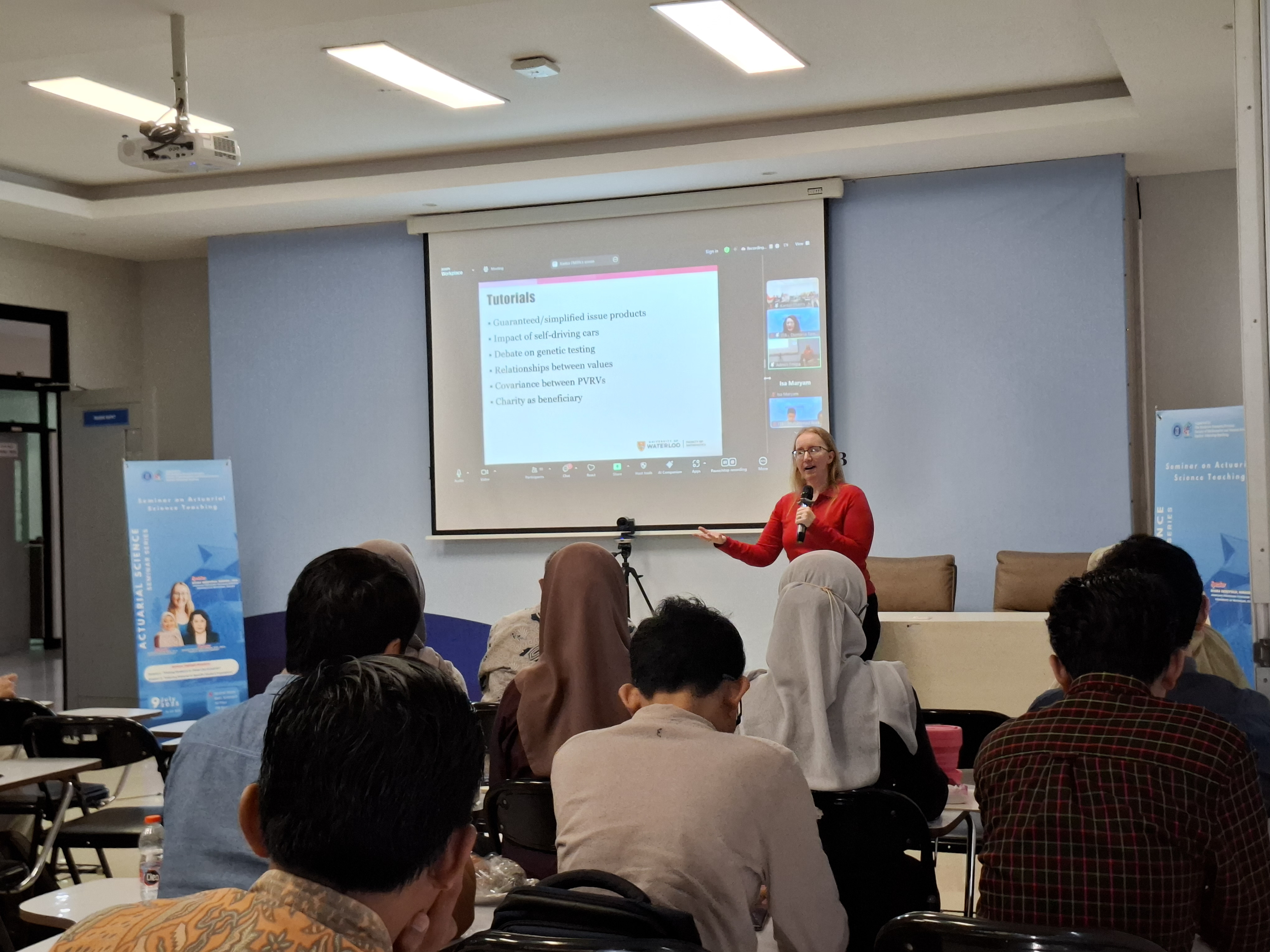 Seminar ini menghadirkan Diana Skrzydlo, MMath., ASA, Associate Professor (Teaching Stream) dari University of Waterloo, yang memaparkan pengalaman dan inovasinya dalam mengajar ilmu aktuaria. Acara dibuka oleh Prof. Sapto Wahyu Indratno, perwakilan Kelompok Keilmuan Statistika ITB, yang menyampaikan apresiasi atas kehadiran pembicara dan peserta dari berbagai universitas di Indonesia.