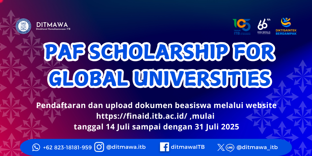 Pendaftaran dan upload dokumen beasiswa melalui website https://finaid.itb.ac.id/ , mulai tanggal 14 Juli sampai dengan 31 Juli 2025