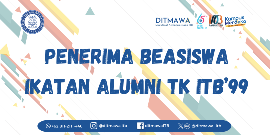 Kami ucapkan selamat untuk mahasiswa/i yang terpilih menjadi penerima Beasiswa Alumni TK ITB’99, yaitu: