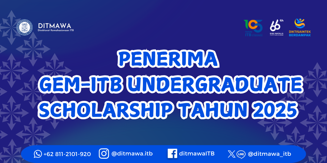 Kepada Mahasiswa/i ITB yang telah lolos sebagai penerima GEM-ITB Undergraduate Scholarship Tahun 2025. Berdasarkan hasil seleksi yang telah dilaksanakan, berikut kami sampaikan nama-nama mahasiswa yang dinyatakan lolos dari beberapa kategori beasiswa, yaitu: https://bit.ly/PenerimaGEM-2025