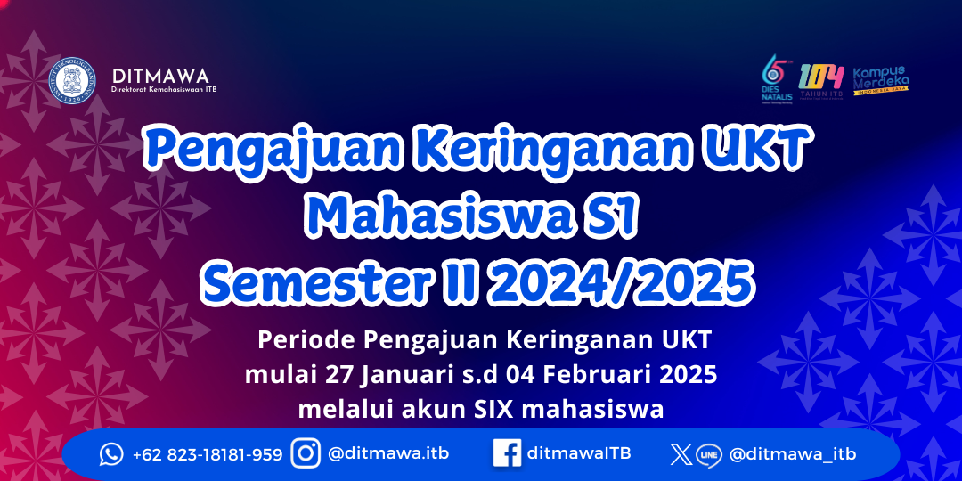 Institut Teknologi Bandung membuka kembali pengajuan keringanan UKT untuk semua mahasiswa S1 ITB Semester II 2024/2025.