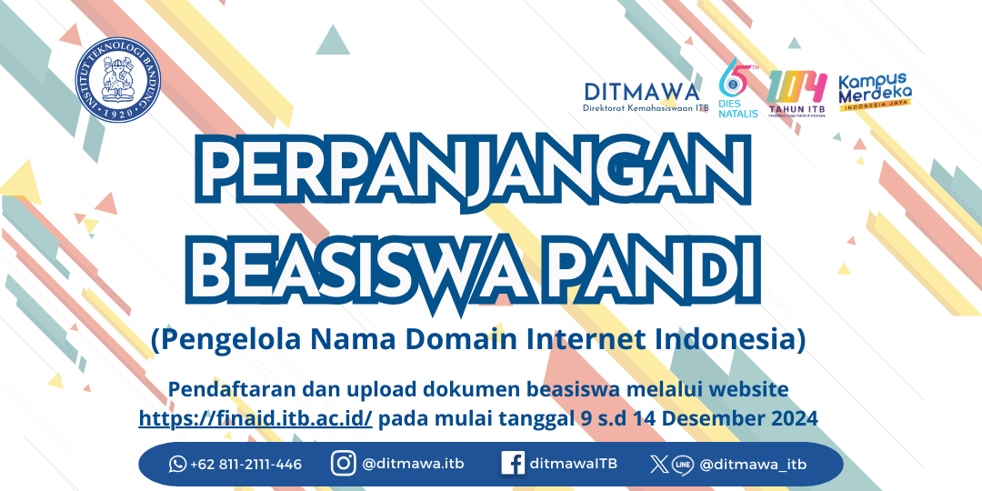 Pendaftaran dan upload dokumen beasiswa melalui website https://finaid.itb.ac.id/ pada mulai tanggal 9 s.d 14 Desember 2024